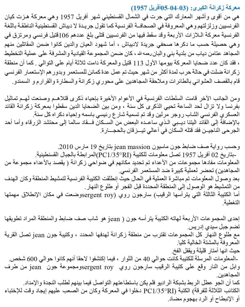 صورتخليد ذكرى معركة زكرانة الكبرى : 03 أفريل 1957 ولأول مرة وبصفة رسمية بتاريخ:03 أفريل 2021 بمنطقة زكرانة .